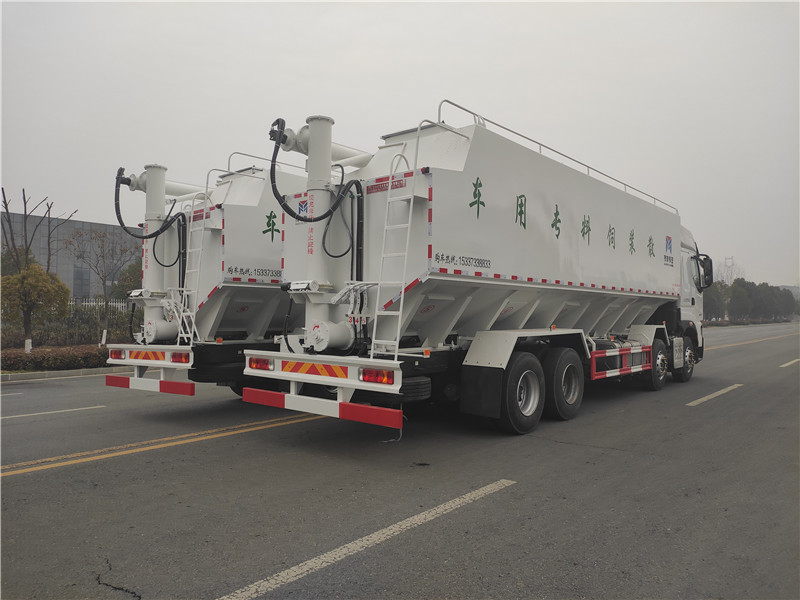 2、散裝飼料在罐體內(nèi)密封輸送,減少損失,保證質(zhì)量,避免污染。全自動(dòng)上料卸料,可連續(xù)作業(yè),大大提高生產(chǎn)效率。人工袋包裝10噸飼料光裝卸就要消耗將近160分鐘的時(shí)間,而散裝飼料運(yùn)輸車(chē)只需20分鐘左右裝卸完成10噸飼料。